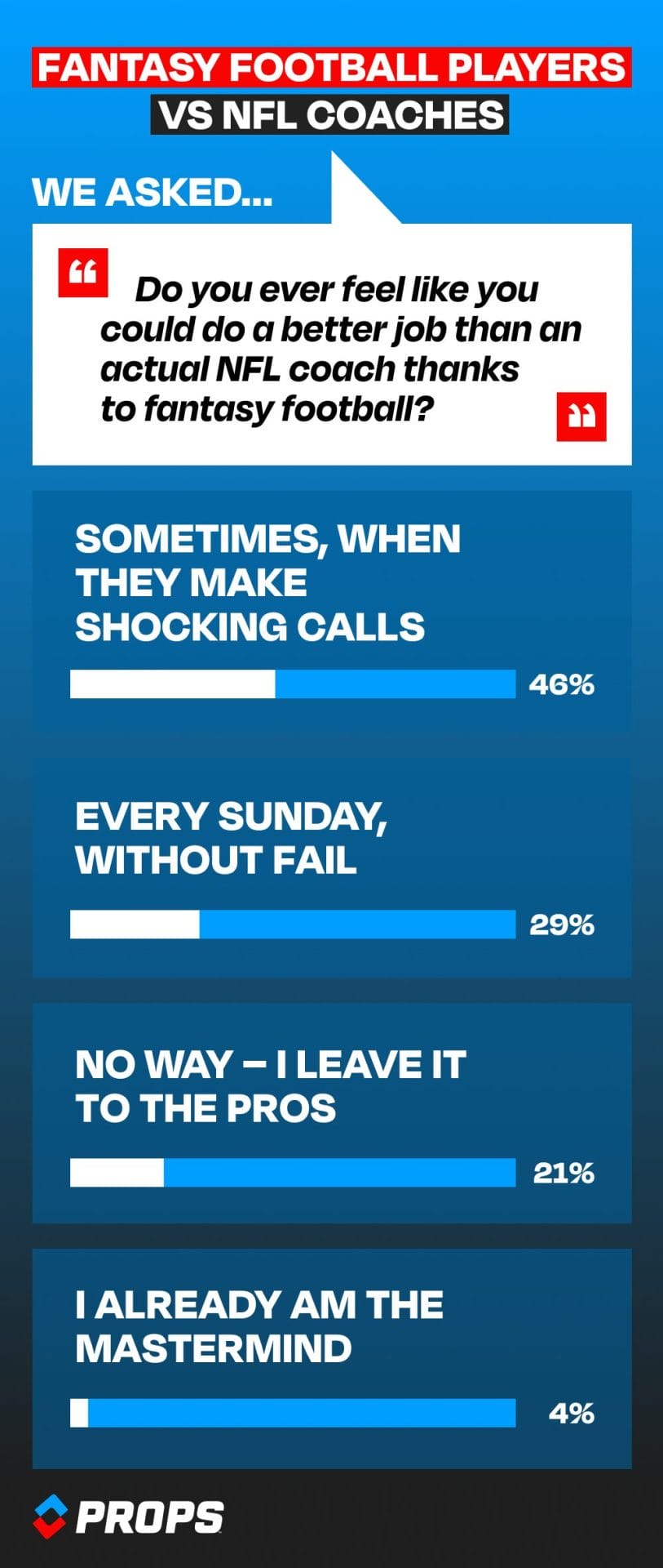 Some people are so proud of their fantasy football management skills, they believe they could do a better job than an actual NFL coach. Overall, 46% of players say they sometimes feel this way, especially when NFL coaches make shocking calls. Even more impressive are the 29% of fantasy NFL players who say they could do a better job “every Sunday, without fail”.